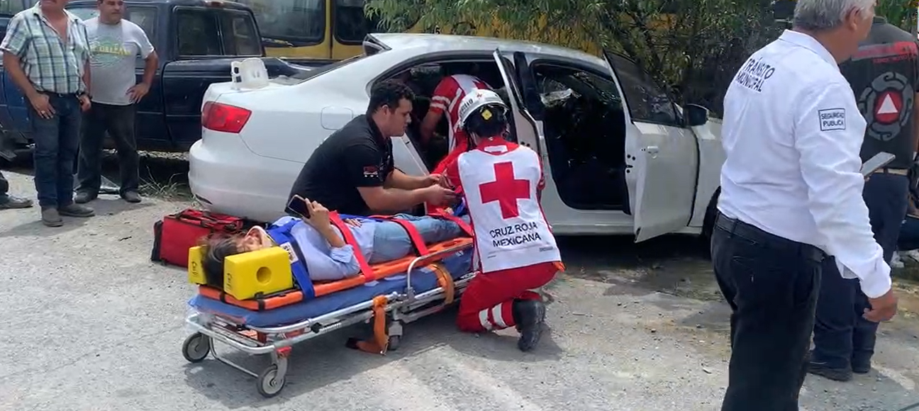 Allende.- un fuerte accidente se registra en Carretera Nacional donde una mujer que conducía una camioneta se estrella con la...