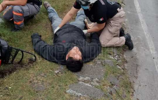 Allende.- Un motociclista resulta lesionado luego de ser golpeado por un vehículo en el cruce de Carretera Nacional y Bustamante....