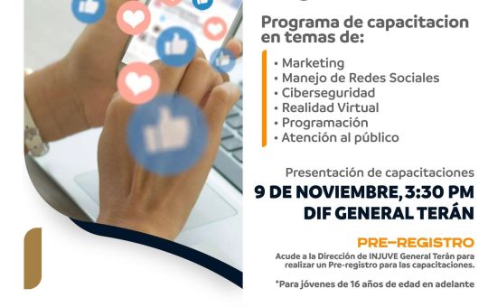 ¡Digitalízate! El Gobierno de General Terán, en coordinación con INJUVE y el ICET Montemorelos, te invita al Programa de capacitación...