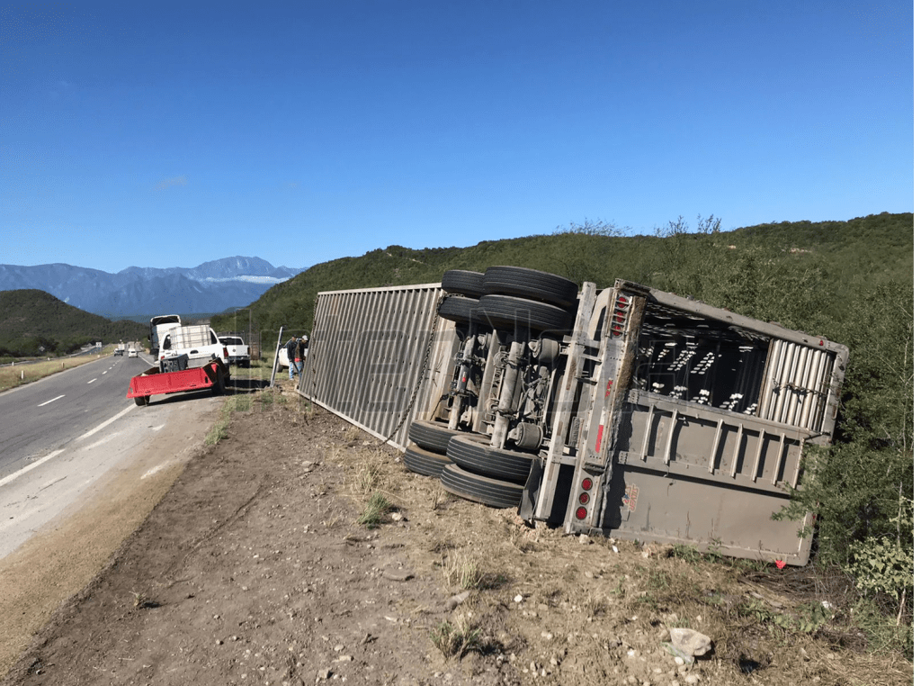 Montemorelos. – Un camión cargado de ganado volcó sobre carretera nacional a la altura de la comunidad de palomas en el cual la mayoría de las reses perdieron la vida.