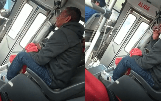 Monterrey. - Sin ninguna pena y ante la mirada de los pasajeros, un hombre fue captado fumando un cigarro de...