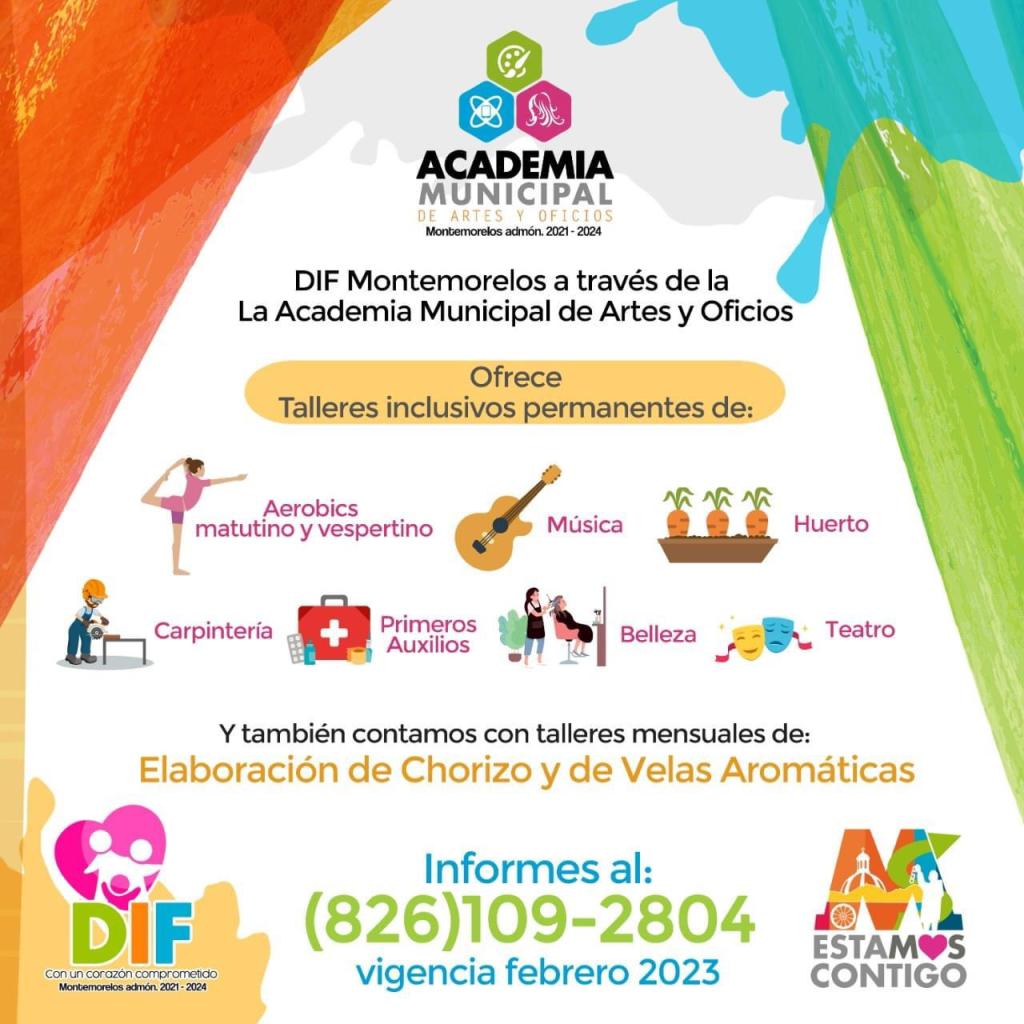 Destacado Montemorelos Noticias #MONTEMORELOS 19 de enero de 2023 Internotanoticias #MONTEMORELOS El DIF Montemorelos a través de la Academia Municipal de Artes y Oficios, te invita a participar a los talleres y cursos que se ofertan de forma gratuita: Para solicitar más información, deberás comunicarte al 826 109 2804. Tags: Destacado, Montemorelos, Noticias Continue Reading Anterior CAPTURAN A PRESUNTO INTEGRANTE DEL CRIMEN ORGANIZADO EN EL MUNICIPIO DE GARCÍASiguiente #GENERALTERÁN. Más historias Noticias Realiza Mónica Oyervides primera entrega de TAGsde la segunda etapa del programa “Caseta a tus órdenes” 17 de abril de 2026 Internota Destacado ALERTAN POR FRENTE FRÍO Y CONDICIONES ADVERSAS EN GUADALUPE 17 de abril de 2026 Internota Destacado Santiago, Tierra de dinosaurios 15 de abril de 2026 Internota Deja una respuesta Cancelar la respuestaTu dirección de correo electrónico no será publicada. Los campos obligatorios están marcados con *Comentario * Nombre * Correo electrónico * Web Δ Este sitio usa Akismet para reducir el spam. Aprende cómo se procesan los datos de tus comentarios.