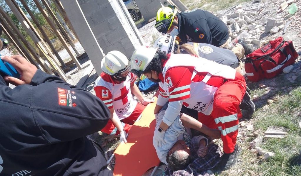 Elementos de Protección Civil en coordinación con cruz roja mexicana atendieron a un hombre tras caer desde una altura considerable al momento de estar trabajando en la construcción