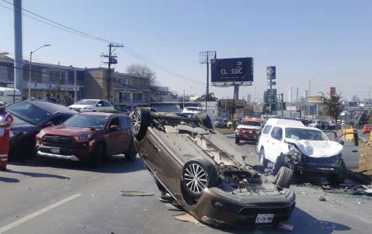Guadalupe_ Un aparatoso accidente vial entre 5 vehículos se registró sobre la Av. Paseo de las Américas/Av. Eloy Cavazos Al...