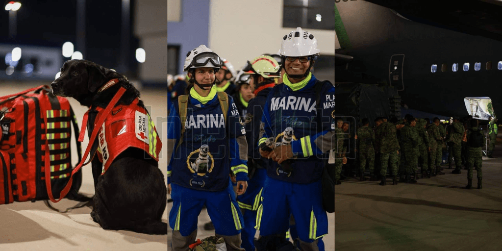 Elementos de las Fuerzas Armadas y binomios caninos, así como toneladas de ayuda humanitaria, volaron la noche de ayer a las naciones afectadas.