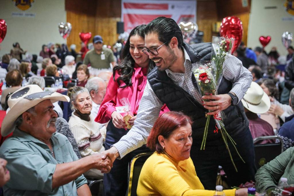 Santiago_ En un ambiente de música, baile y muestras de afecto, adultos mayores de Santiago festejaron junto al Presidente municipal, David de la Peña Marroquín, y la Presidenta del DIF, Olga Amalia Villalón, el Día del Amor y la Amistad.