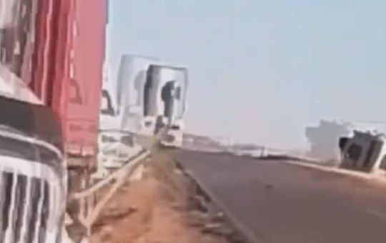 Reportan varios trailers caídos a la altura de #Saucillo Chih. Por las severas rachas de viento .Atentos