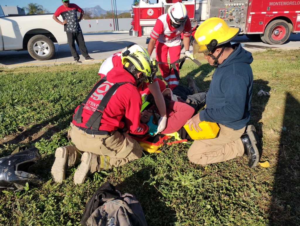 PIERDE EL CONTROL MOTOCICLISTA Y DERRAPA EN MONTEMORELOS