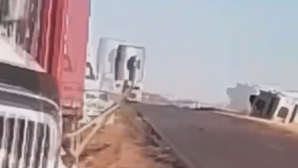 (VIDEO) FUERTES RÁFAGAS DE VIENTO VOLCARON TRAILERS EN SAUCILLO CHIHUAHUA.