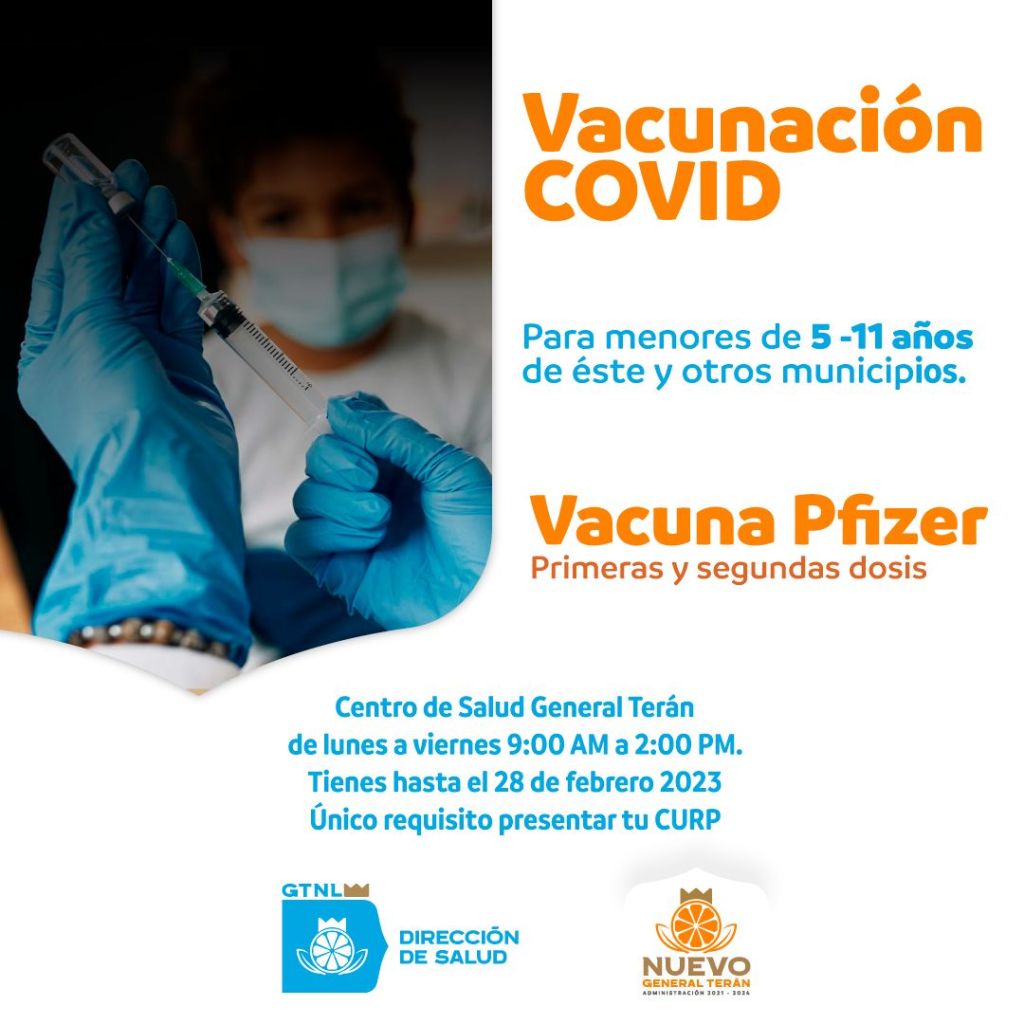 Jornada de vacunación para niñas y niños de 5 a 11 años de General Terán y otros municipios