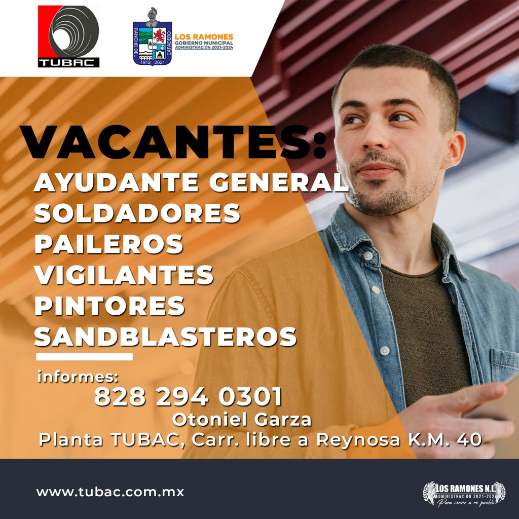 Si te interesa algún puesto, puedes solicitar informes con Otoniel Garza al teléfono: 828 294 0301