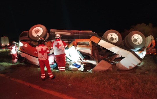 Arteaga_ Un accidente vial tipo volcadura se registró sobre la carretera 57, en el tramo Los Chorros, a la altura...