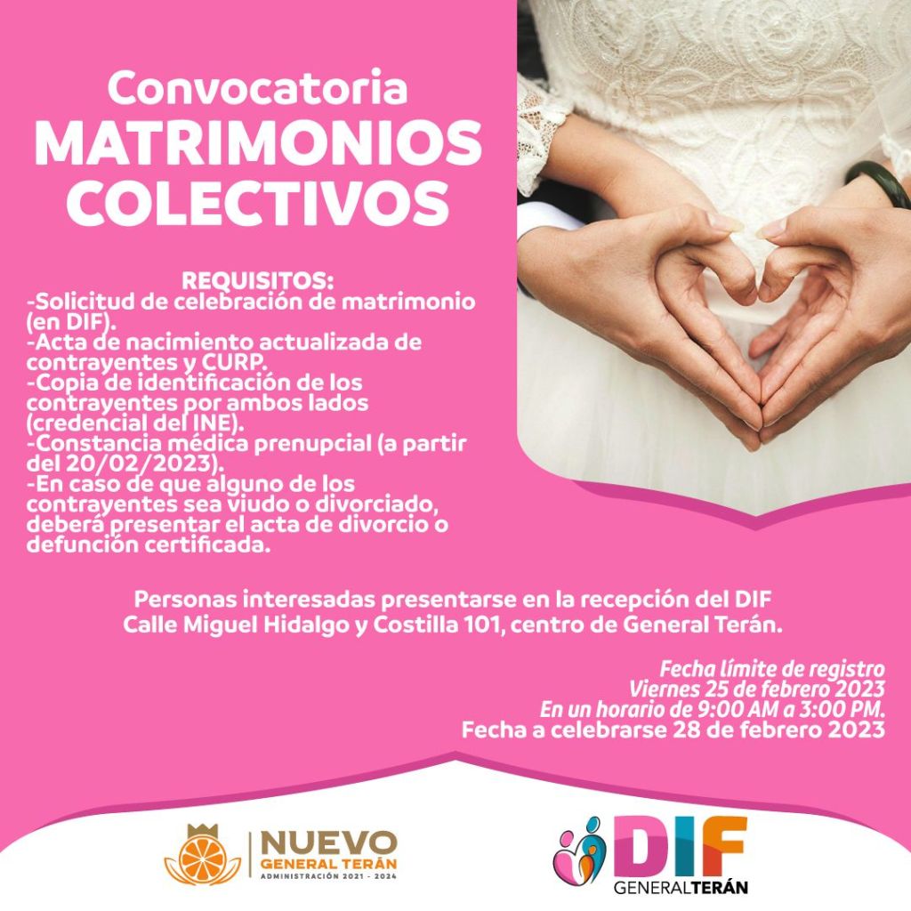 El Gobierno de Gobierno de General Terán te invita a ser parte de los Matrimonios Colectivos y le des el “Si Acepto” a la persona que amas