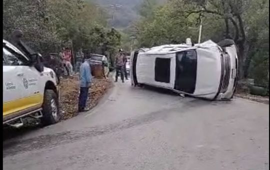 SE REGISTRA VOLCADURA EN CARRETRA COLA DE CABALLO EN SANTIAGO N.L.