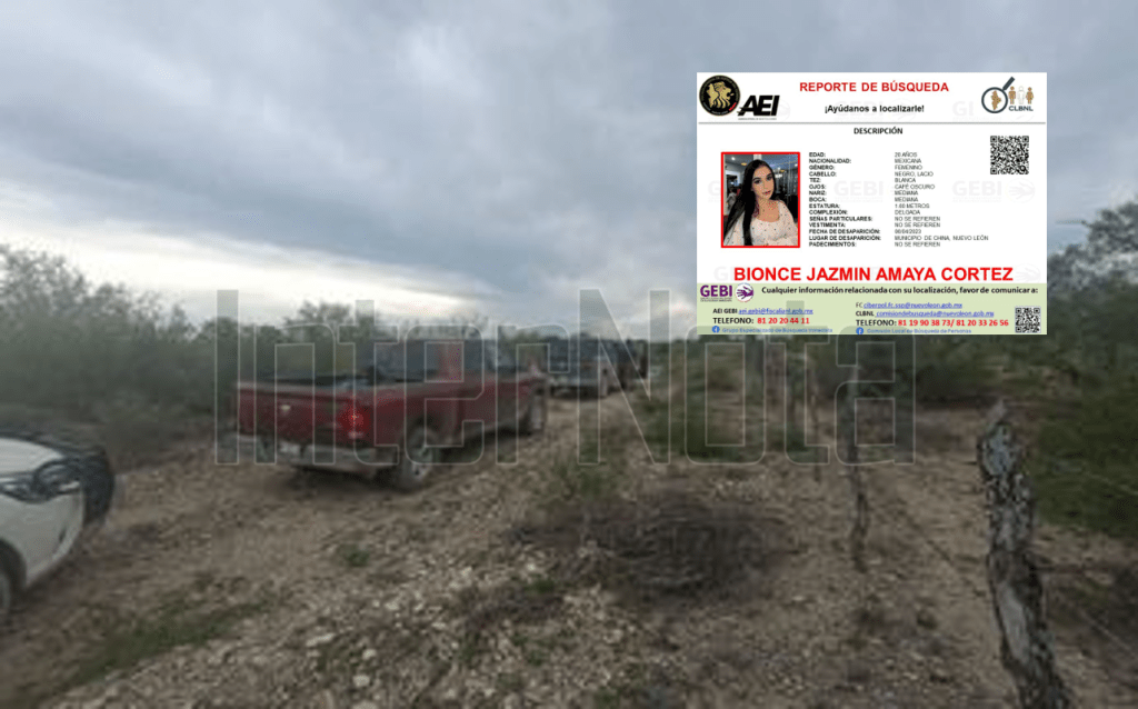 General Bravo_ Durante los cateos realizados en el operativo de búsqueda de la joven Bionce Amaya, desaparecida en China, Nuevo León, fue localizado el cuerpo de una mujer, según fue dado a conocer en una ficha de la Fiscalía Especializada en Personas Desaparecidas.