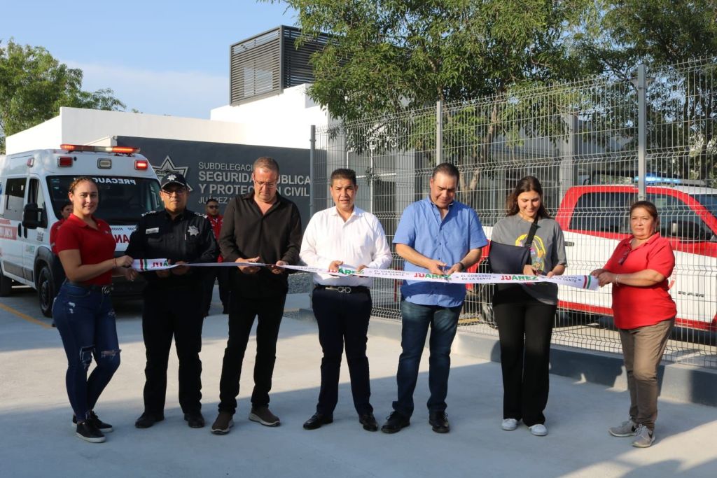 Con la finalidad de dar una respuesta más rápida a los habitantes de Juárez cuando requieran de algún auxilio, el Alcalde Francisco Treviño Cantú avanza en su proyecto para descentralizar la Secretaría de Seguridad Pública al inaugurar este viernes la Delegación Norte de Policía.Siendo la segunda delegación construida en la actual Administración municipal, ésta de la Zona Norte se ubica en la Colonia Los Puertos donde beneficiará a un amplio sector de la población, ya que además de policías contará con elementos de Bomberos, Protección Civil, Tránsito y una ambulancia con paramédicos que estarán disponibles las 24 horas para cualquier emergencia.»Este fue un compromiso que realizamos con los habitantes de esta zona, que íbamos a construir una Delegación de Policía en la Zona Norte, para que diera atención a todos estos sectores de Los Puertos, Anzures, Valle Santa Isabel, Urbivilla y otras colonias aledañas, para que estén más cerca las unidades de la ciudadanía que habita en estas colonias, y cuando soliciten algún auxilio llegue los más pronto posible», dijo Paco Treviño.En el evento de inauguración, donde estuvo acompañado por los diputados Heriberto Treviño y Julio Cantú, el Alcalde de Juárez señaló que en esta nueva delegación se contará además con trabajadores sociales, atención psicológica y se brindará asesoría jurídica a los ciudadanos que la requieran.»Y habrá un área de atención para que estén canalizando las peticiones (de la gente) para que no tengan que ir hasta la Presidencia municipal, aquí pueden dejar sus escritos cuando quieran solicitar algún deshierbe de una plaza, alguna necesidad que tengan en alguna calle, etcétera… Aquí siempre serán bien atendidos y daremos seguimiento a sus peticiones para que estén atendidas en su totalidad», añadió el munícipe.Recordó que el año pasado se inauguró la Delegación Sur de Policía en la Colonia Santa Mónica, y anunció que se tienen proyectados módulos de Policía en las colonias San Antonio y Coahuila, con lo que Seguridad Pública tendrá mayor presencia también en las zonas oriente y poniente del municipio.»Vamos a habilitar algunas jefaturas, algo un poquito más pequeño (que las delegaciones) a la entrada de la Colonia San Antonio, y otra más en la Colonia Coahuila, para que la Policía esté más al pendiente de los rondines… Contarían con planta de radio para que estén en constante comunicación con el C4″, dijo Paco Treviño.