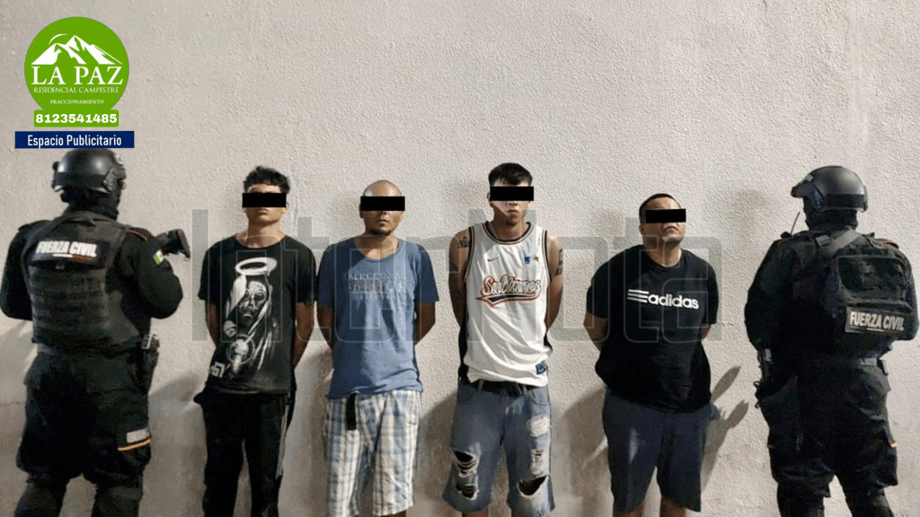 Santa Catarina_ Dando seguimiento a trabajos de inteligencia, Fuerza Civil logró aprehender a cuatro hombres adultos y un menor de edad, en el municipio de Santa Catarina, Nuevo León.