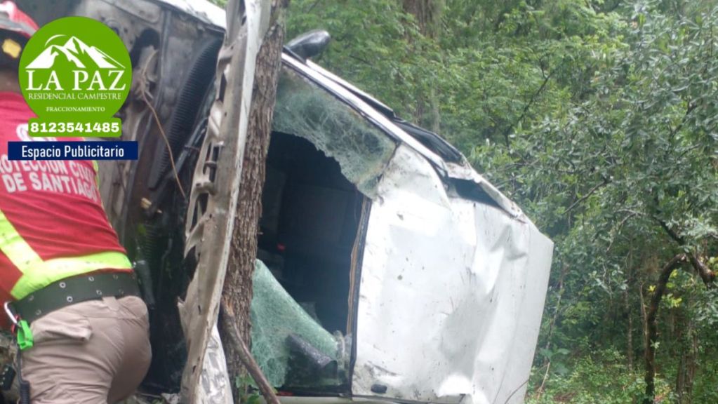 VEHÍCULO SE DESBARRANCA EN SIERRA DE SANTIAGO N.L.