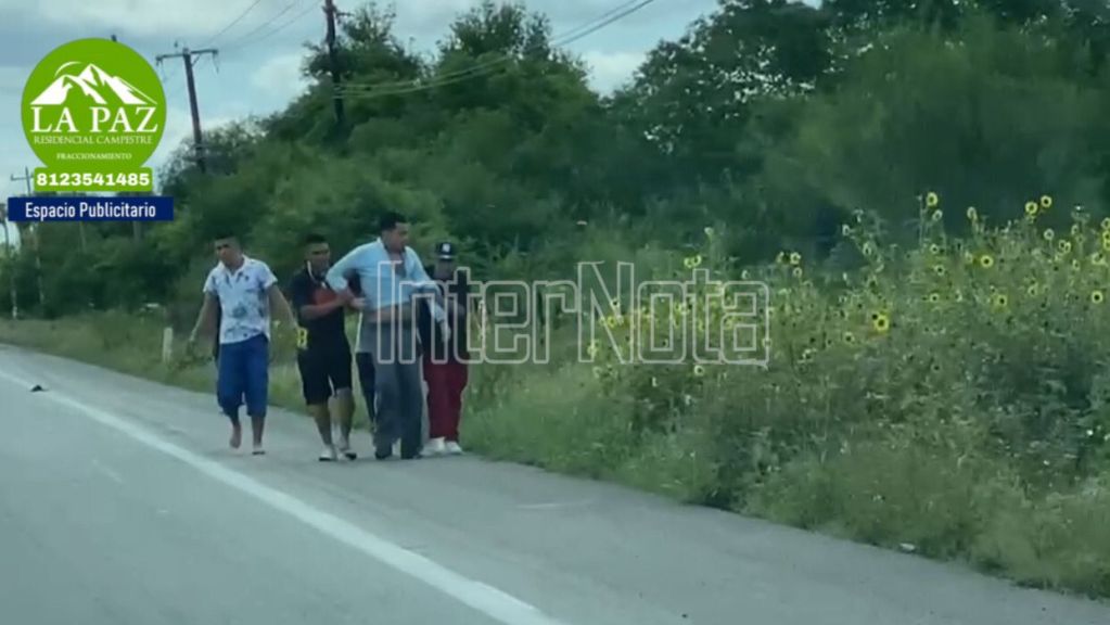 En las imágenes se puede apreciar como es asegurado por sus compañeros sobre la carretera.