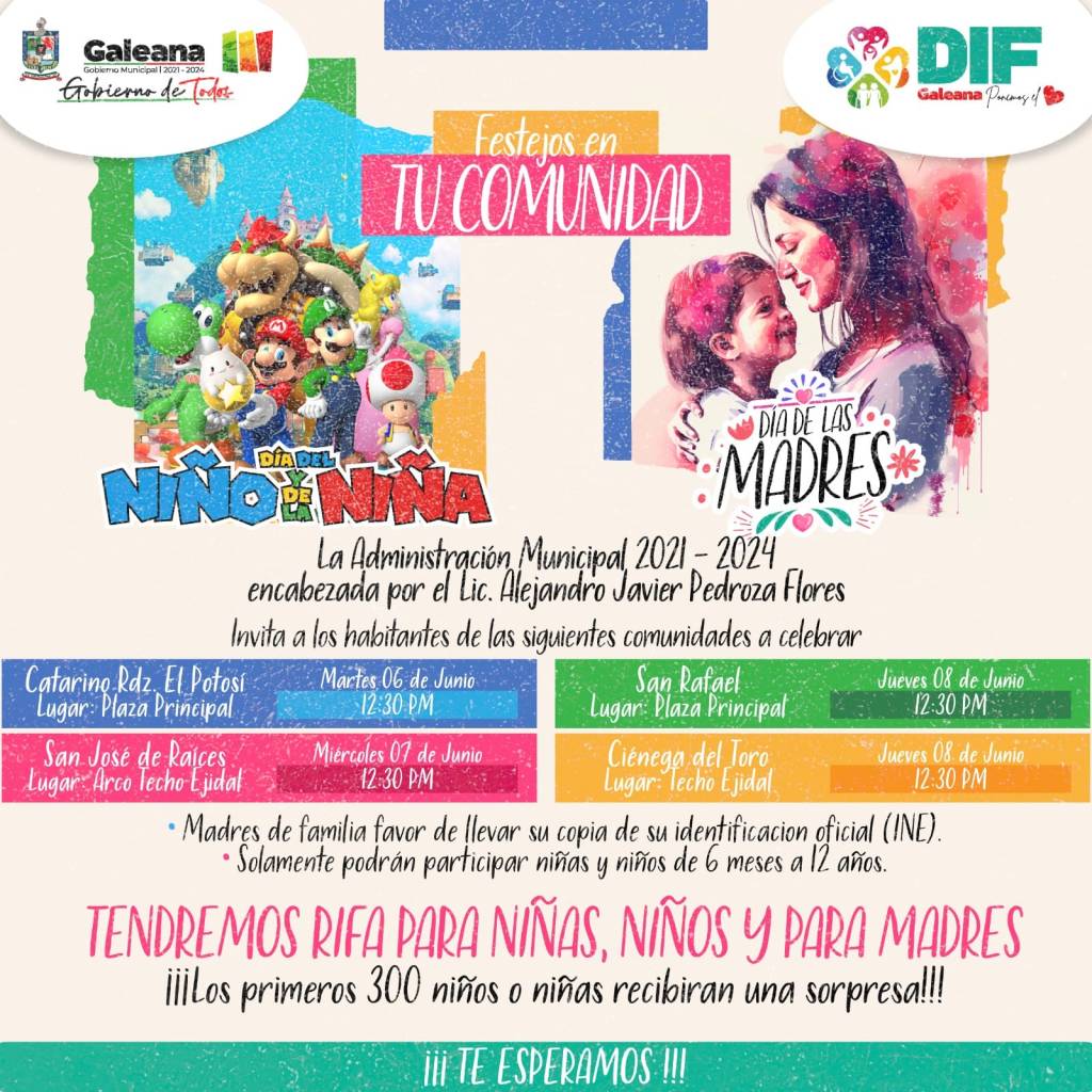 El Gobierno Municipal de Galeana realizan una invitación para Festejar por región por el día de Las Madres, Las Niñas y Los Niños de Galeana.