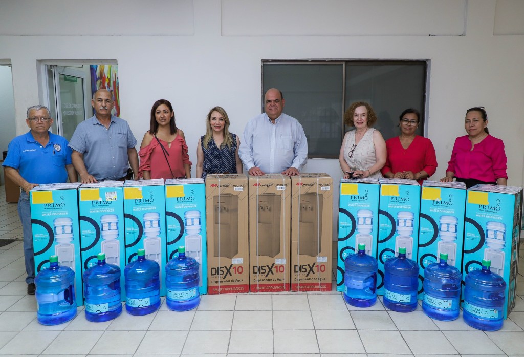 General Bravo_ El alcalde, Edgar Cantú Fernández y su esposa Lic. Patricia Cantú de Cantú, hicieron entrega de enfriadores de agua a los planteles educativos del municipio, ya que en esta ola de calor se busca prevenir deshidratación o un golpe de calor en niños, niñas y adolescentes.