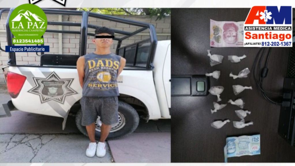 Elementos de la Secretaría de Seguridad Pública realizaron la detención de un masculino quien dijo llamarse Juan Manuel “N” de 20 años, de apodo ”Juanito Pistolas” ya que al realizarle una inspección de control preventivo tras ser detenido por incurrir en una falta administrativa consistente en alterar el orden público sobre la calle Reynaldo Gutiérrez de la colonia José María Morelos, se le localizo entre sus ropas once envoltorios plásticos qué en su interior contenían una sustancia blanca y cristalina con las características de la droga conocida como cristal, así como una báscula gramera.