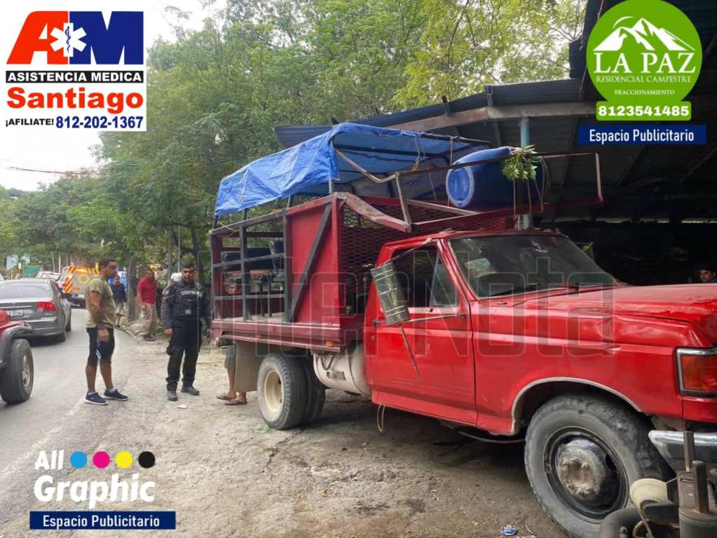Santiago.- Fuerte movilización de elementos de protección civil Santiago y del estado ocurrió rumbo a la sierra de Santiago justamente a la altura de la Cieneguilla donde un camión doble rodado utilizado para trasladar personas a cabañas en la sierra terminó por quedarse sin frenos para después estrellarse contra un taller mecánico.