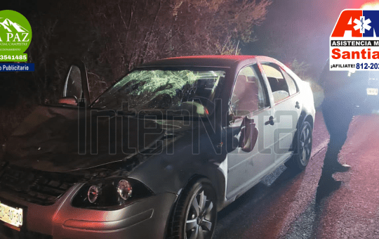 Cadereyta_ El conductor de un automóvil Jetta fue sorprendido por un animal no identificado el cual se le atravesó en...