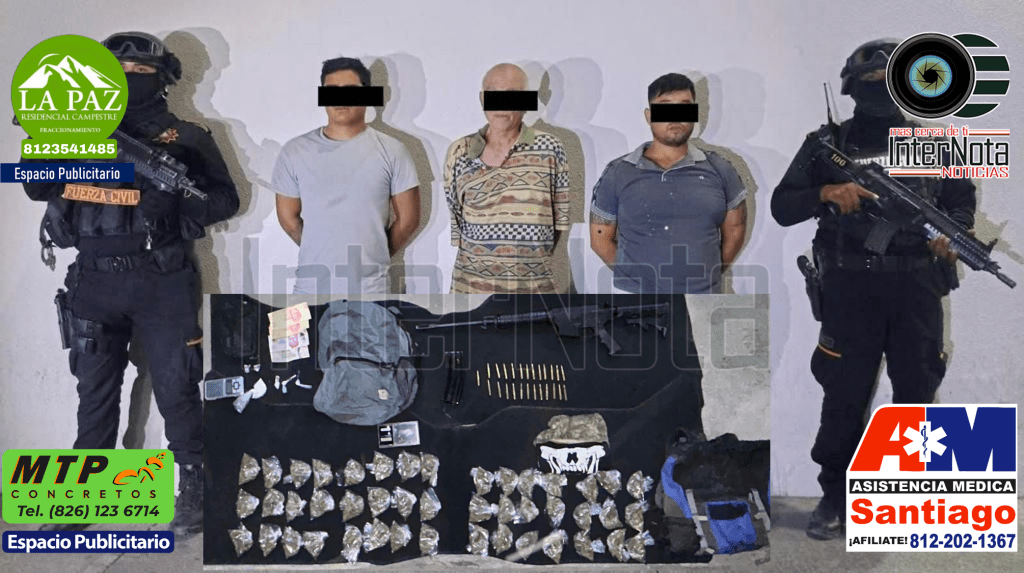 SALINAS VICTORIA || DETIENEN A TRES PERSONAS CON ARMAS Y DROGAS