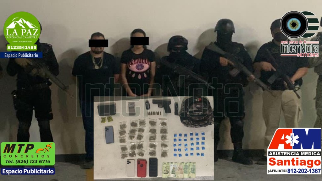 Sabinas Hidalgo_ Derivado de de labores operativas coordinadas, el Ejército Mexicano, la Agencia Estatal de Investigaciones y Fuerza Civil; detuvieron a una pareja que forma parte de un grupo delictivo con presencia nacional.