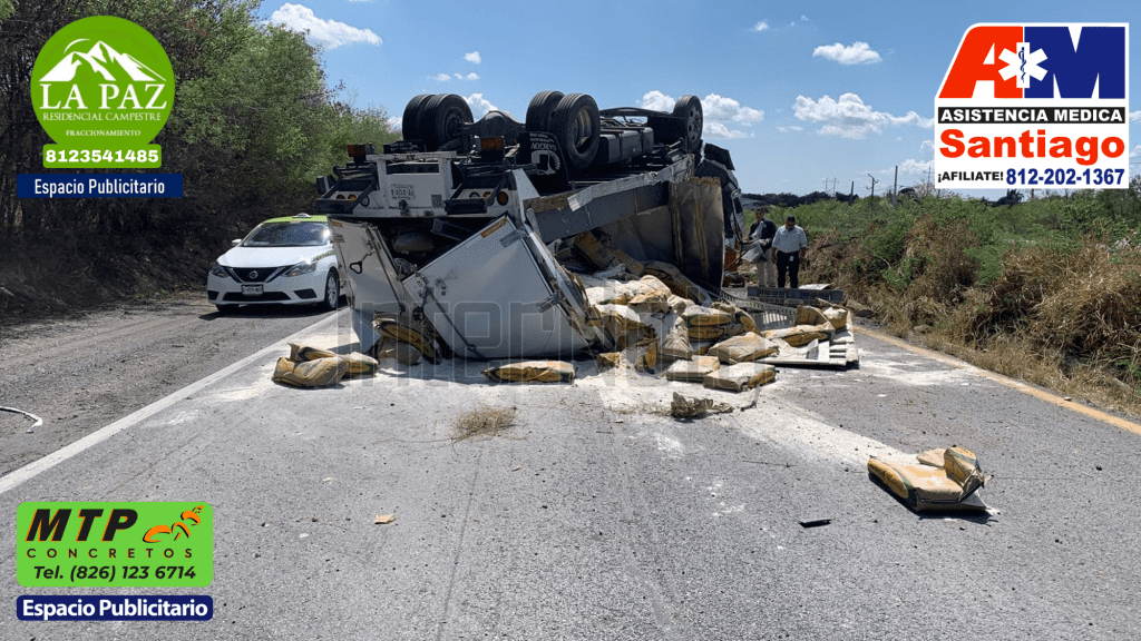 LINARES || VUELCA CAMIÓN CARGADO DE MASECA.
