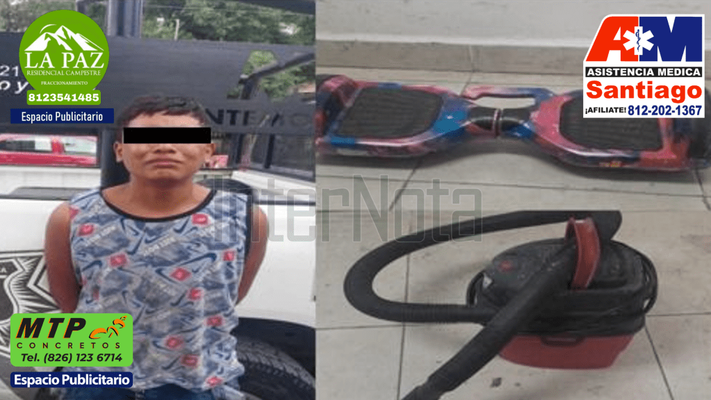 Elementos de la Secretaría de Seguridad Pública realizaron la detención de un masculino quien dijo llamarse MARIO YAHIR NN de 19 años, alias “EL MATONCILLO” tras una denuncia recibida en el 911 donde una femenina de la tercera edad reportaba que un masculino había ingresado a su domicilio en calle Bolívar del Barrio Matamoros, al arribar los oficiales al lugar sorprendieron al sujeto saliendo del domicilio con dos objetos en su poder, siendo señalado por la víctima, motivo por el cual fue trasladado de manera inmediata a las instalaciones del Ministerio Publico.