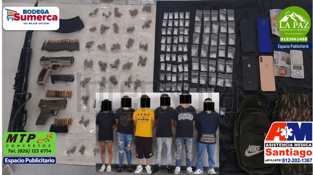 ESCOBEDO || CAPTURAN A SEIS JÓVENES CON ARMAS DE FUEGO Y MÁS DE 100 DOSIS DE DROGA