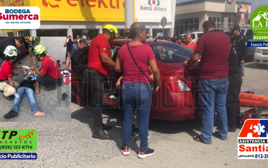 Montemorelos_ Un fuerte accidente vial entre un vehículo y una motocicleta se registró en Avenida Capitán Alonso de León y...
