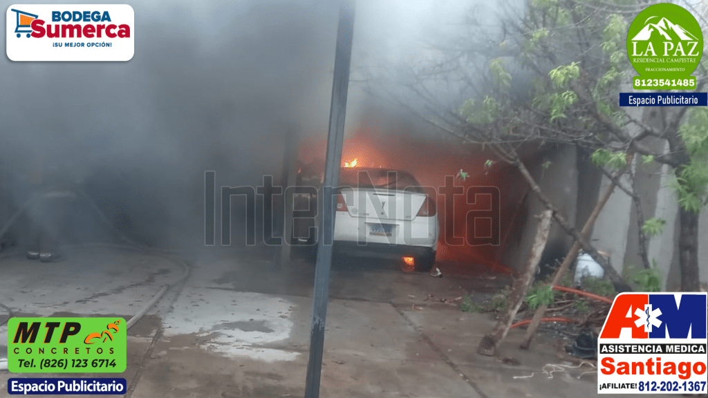 En incendio se registra en un vehículo compacto color blanco americano en el interior de una cochera en la Colonia antes mencionada hasta el lugar arriba elementos de bomberos para sofocar dicho incendio.