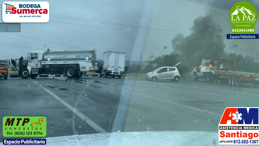 Personas armadas bloquean con carros y camiones recién robados en el entronque de la Carretera Libre a Reynosa la entrada de Los Ramones.