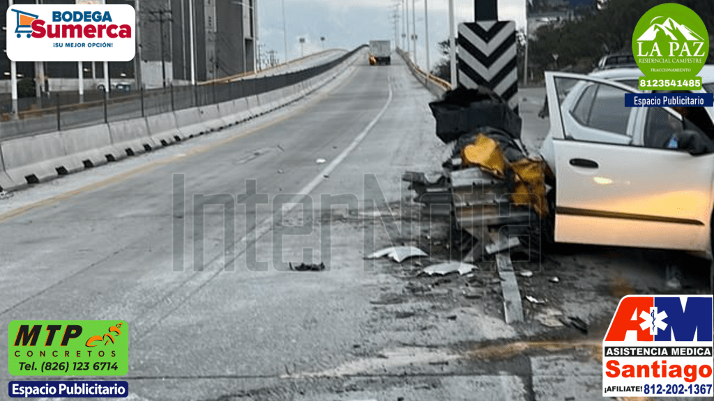Un fuerte accidente vial se registró durante la mañana de hoy en Blvd. Díaz Ordaz/ Blvd. Antonio L. Rodríguez, Monterrey NL. en donde participa un vehículo el cual se estrella contra el muro de contención.