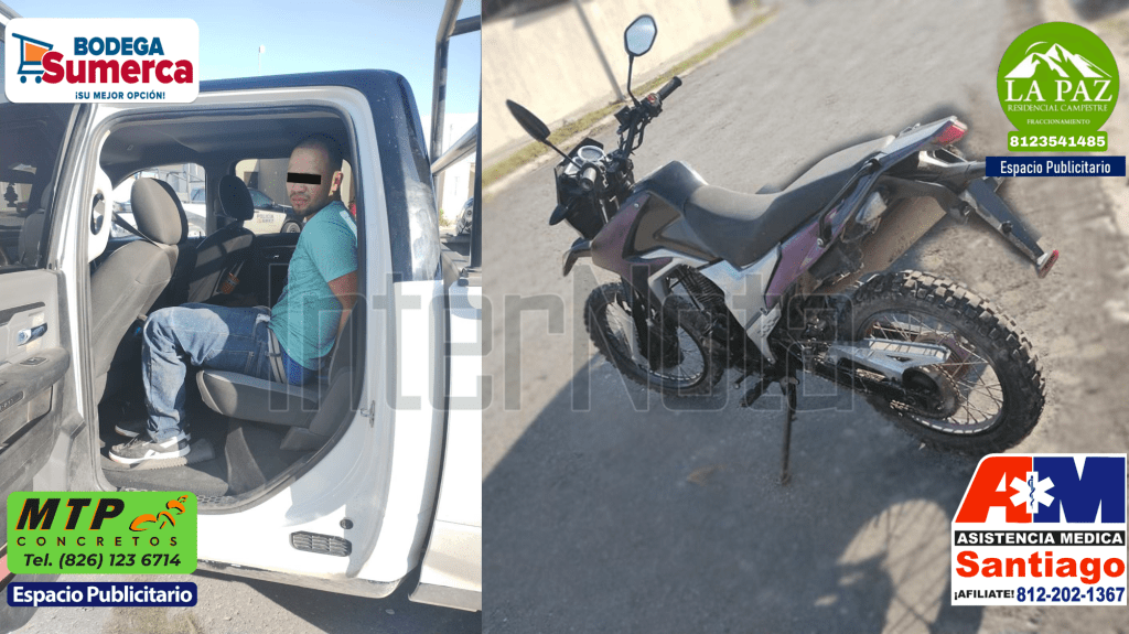 En ese momento los oficiales de Policía detuvieron a quien dijo llamarse Saúl G., de 27 años, por encontrarse conduciendo un vehículo con reporte de robo, motivo por el cual fue puesto a disposición de la autoridad correspondiente junto con el vehículo tipo motocicleta para que responda por el delito equiparable al robo de vehículo y los que le resulten.