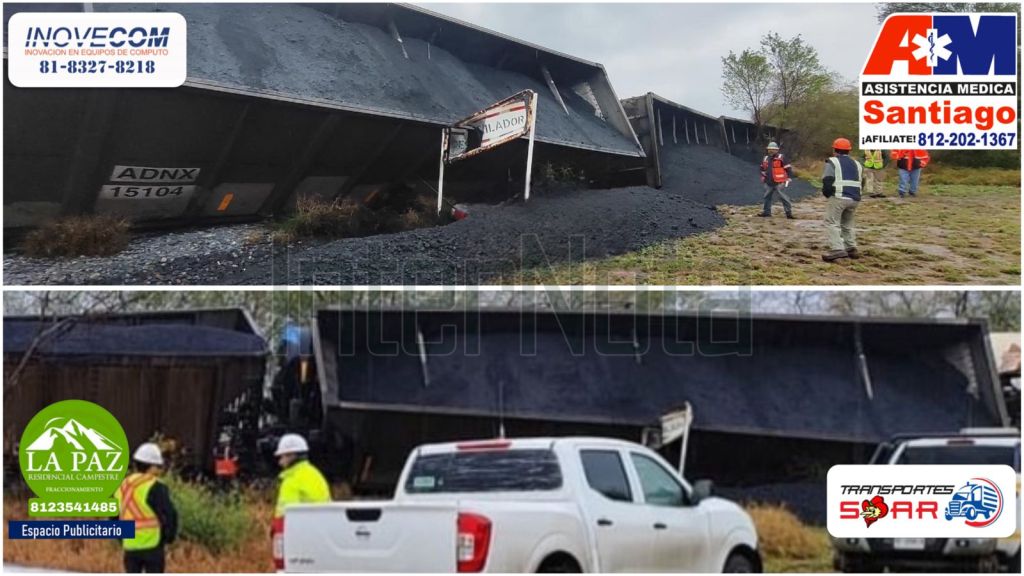 Cadereyta.-En un incidente inesperado, esta mañana se reportó el descarrilamiento de 4 góndolas de tren frente a las instalaciones de la Refinería Héctor R. Lara Sosa. El suceso generó preocupación en la zona, pero afortunadamente no se registraron daños a terceros, solo el derrame del producto que transportaban las pesadas góndolas.