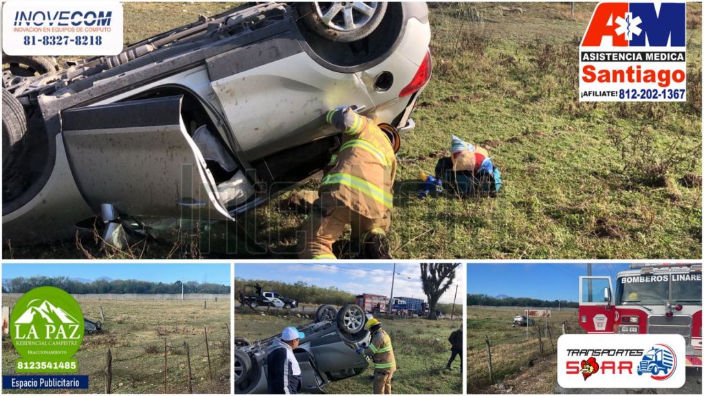 Linarez.- Bomberos de Linares acuden al reporte de un accidente vial tipo volcadura, esto sobre la Carretera Nacional en el kilómetro 175.