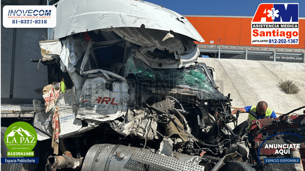 Un fuerte accidente vial entre dos unidades de carga de registro en Carretera a Laredo km. 158, Vallecillo N.L. en donde lamentablemente un chofer perdió la vida.