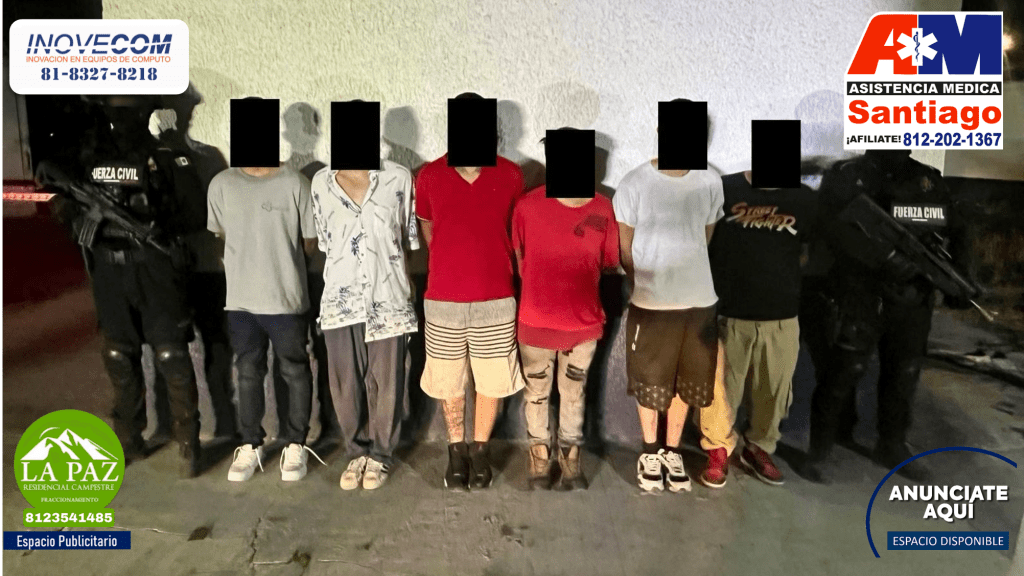 Policías de Fuerza Civil realizaron la captura de seis presuntos generadores de violencia, en el municipio de Apodaca.