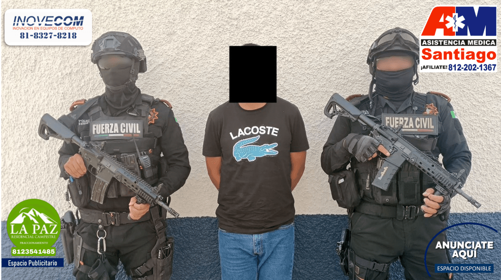 de Fuerza Civil capturaron a un presunto cabecilla de un grupo delincuencial, en el municipio de Monterrey.