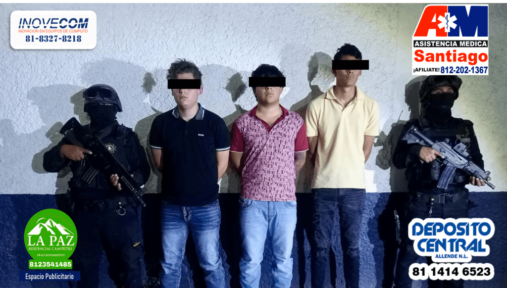 Policías de Fuerza Civil realizaron la detención de tres jóvenes, en posesión ilegal de un arma de fuego, en el municipio de Ciénega de Flores.