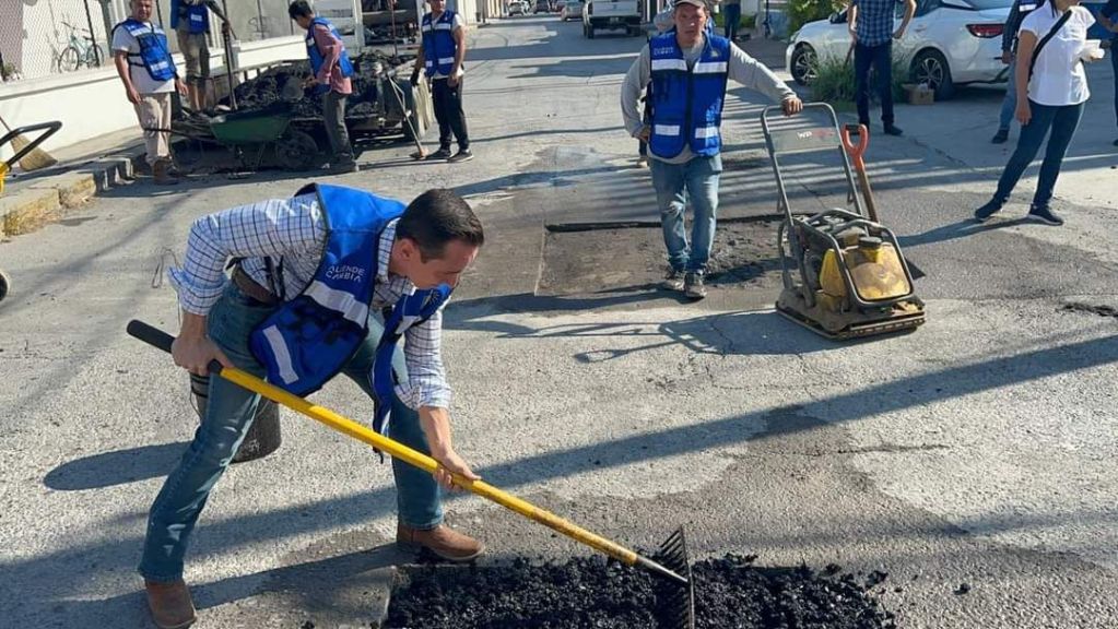 CON PICO Y PALA EL ALCALDE LALO LEAL INICIA LOS TRABAJOS DE BACHEO JUNTO CON PERSONAL DE SERVICIOS PÚBLICOS