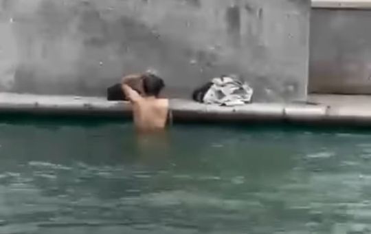Monterrey, N.L.- Un hombre fue captado dándose un “chapuzón” en el canal del Paseo Santa Lucía, a pesar de las...
