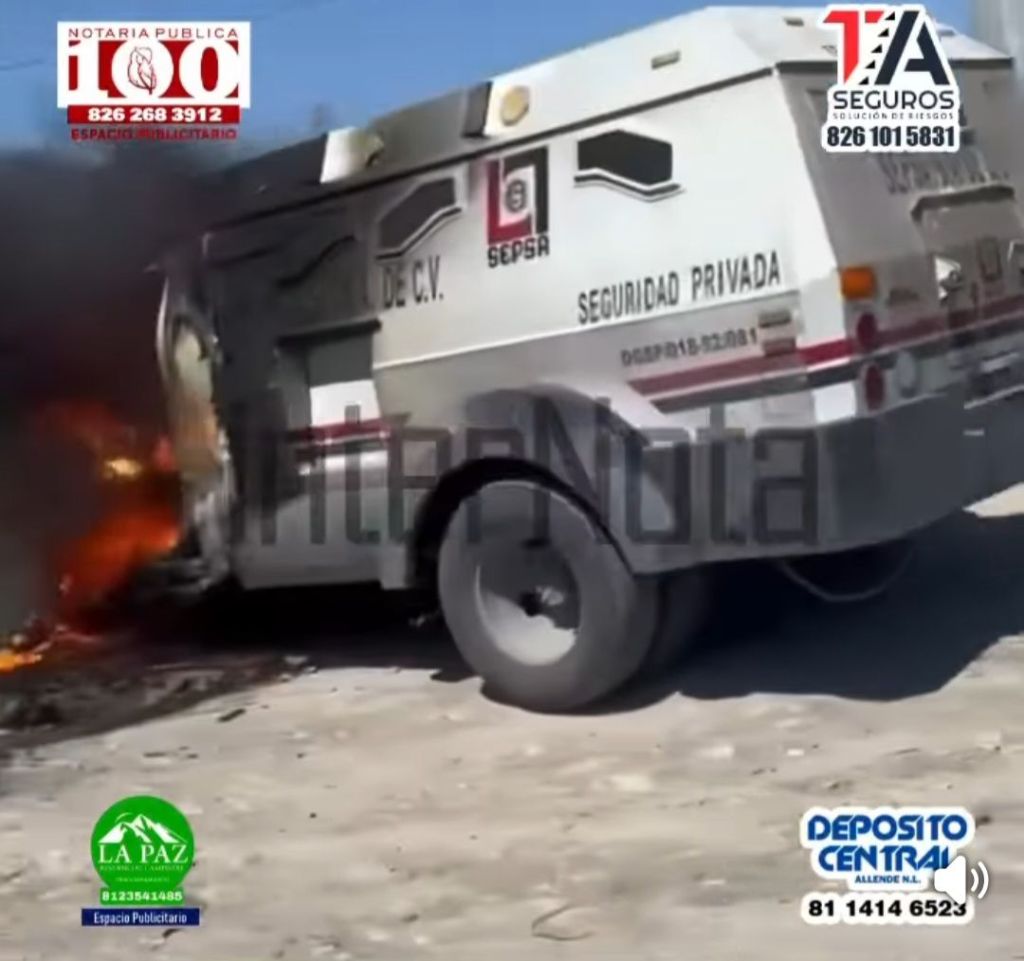 SE INCENDIA CAMIÓN DE VALORES EN PESQUERÍA, NL