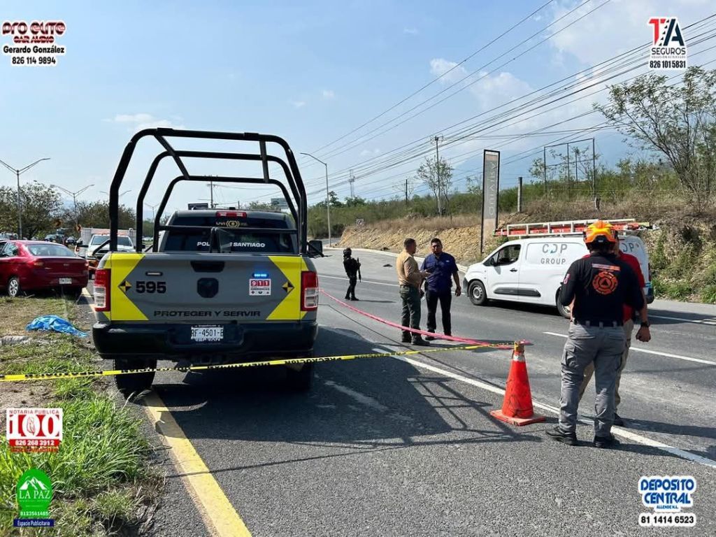 Protección civil de Santiago se encuentra en el sitio y policía municipal de Santiago abanderando el área.