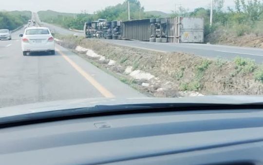 MONTEMORELOS🚨 REPORTAN LA VOLCADURA DE UN TRÁILER SOBRE CARRETERA NACIONAL EN EL KM. 194 EN DIRECCIÓN DE NORTE A SUR...