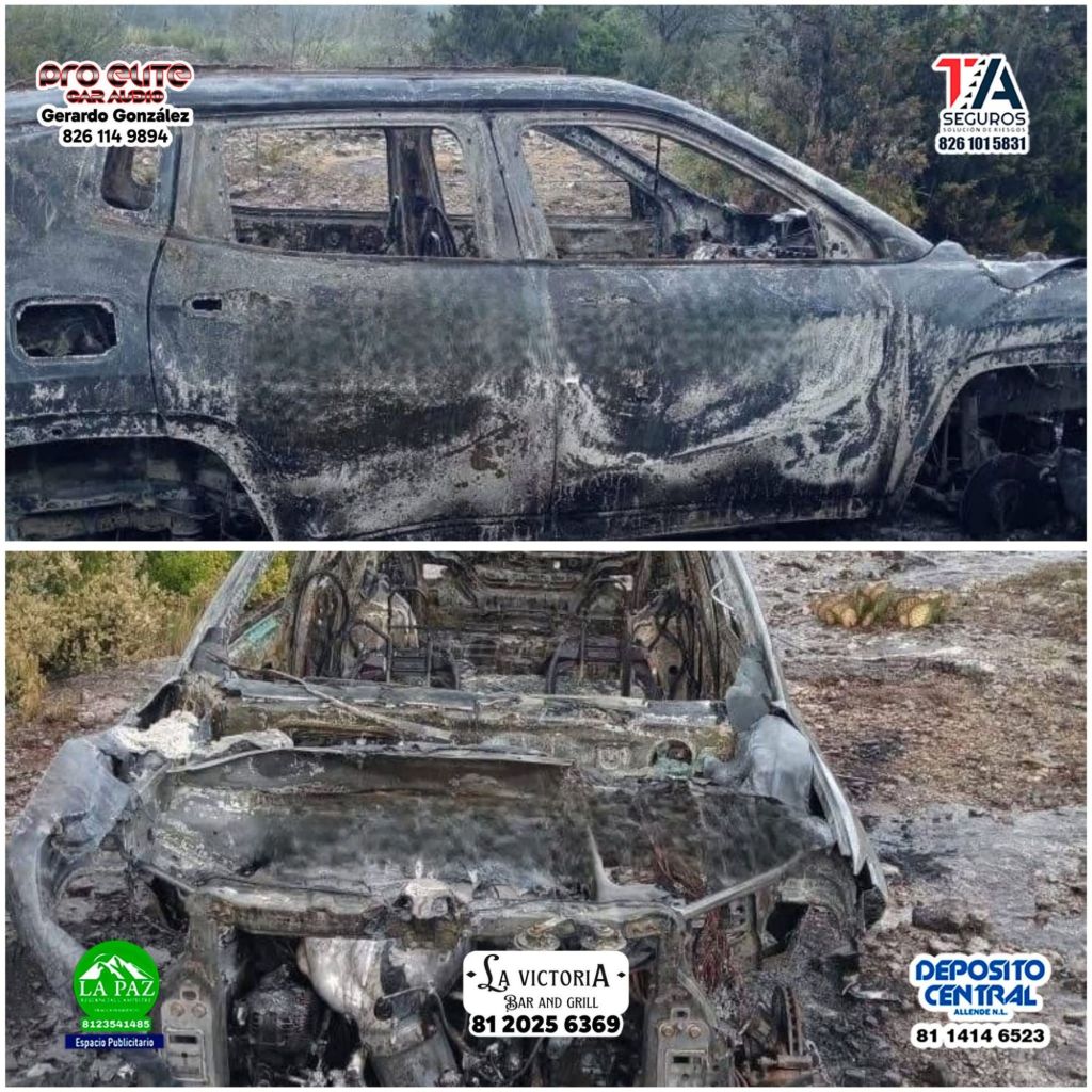 LOCALIZAN CAMIONETA INCENDIADA EN MIER Y NORIEGA, N.L.